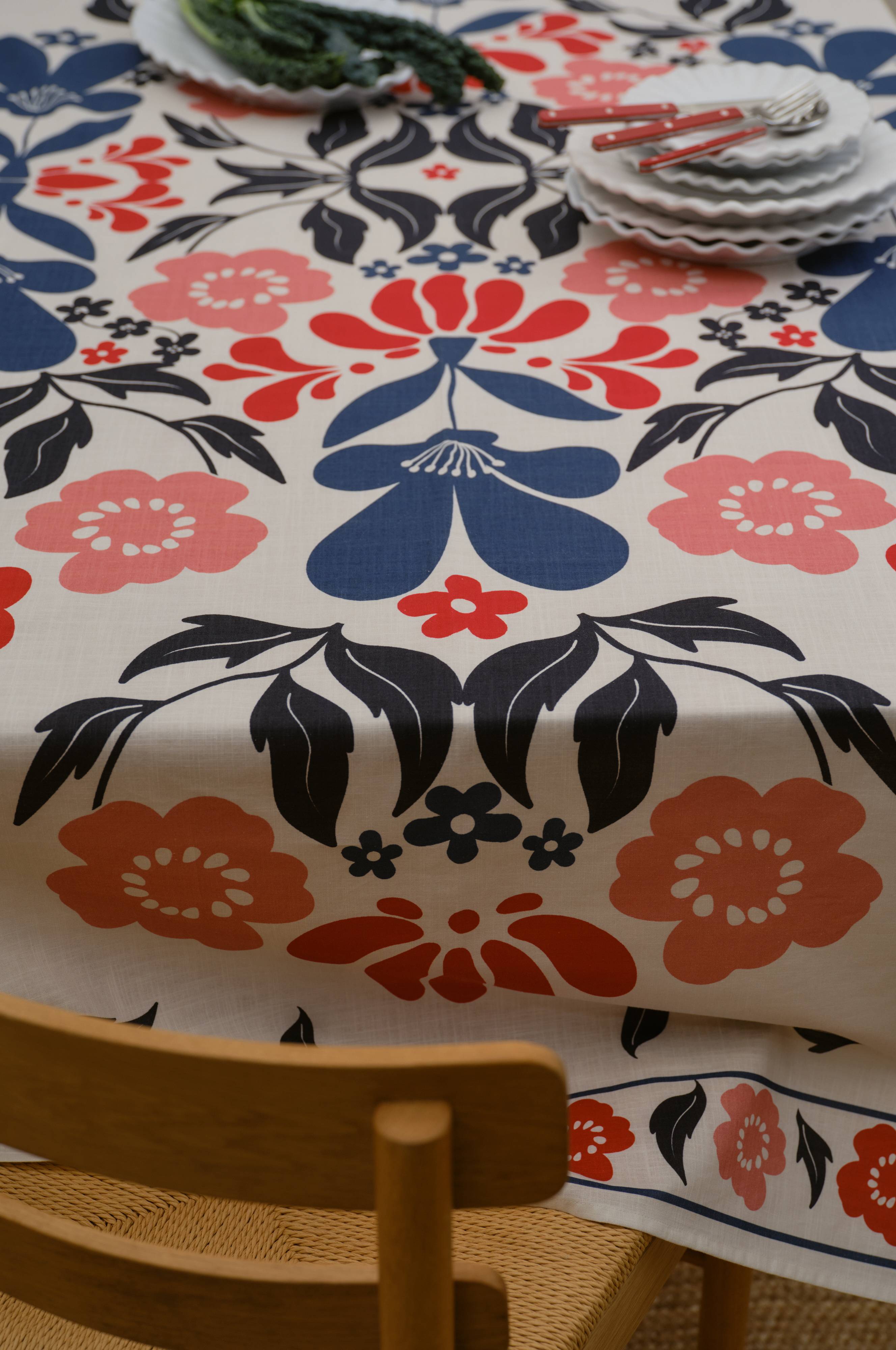 Obrus SELJA wyróżnia się wyjątkowym cyfrowym kwiatowym nadrukiem, który doda uroku Twoim posiłkom. Wykonany ze splotu typu slub, zapewniającego teksturowany wygląd lnu, wnosi odrobinę skandynawskiej elegancji do każdego nakrycia stołu. Jako część rodziny SELJA, oferuje możliwość stworzenia harmonijnego wyglądu z pasującymi elementami, dzięki czemu idealnie nadaje się na spotkania i codzienne posiłki.
