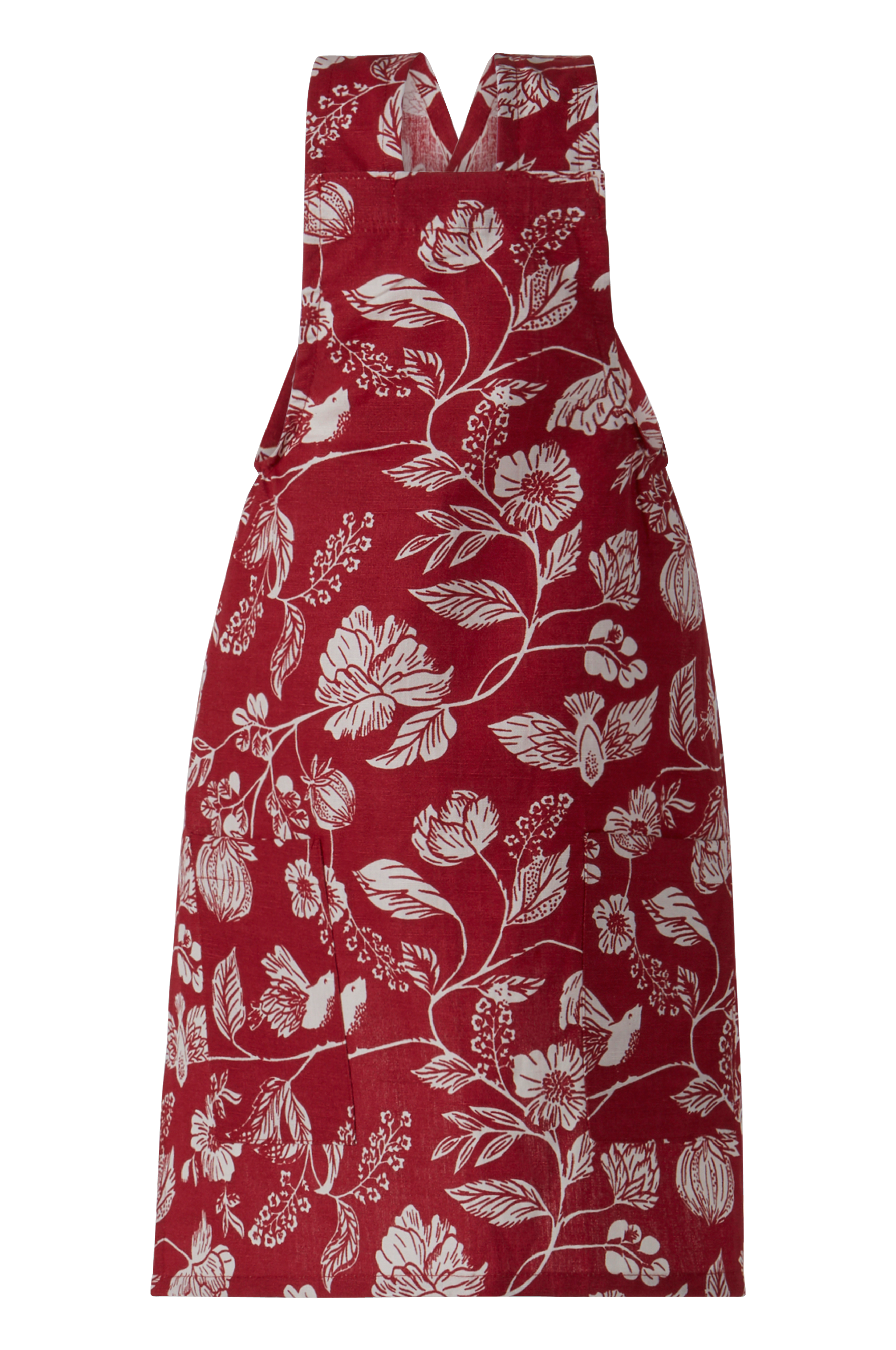 Fartuch z gęsto utkanej mieszanki lnu i bawełny, która poddana została praniu enzymatycznemu dla uzyskania dodatkowej miękkości. Bawełna i len tworzą przyjemną mieszankę, która zachowała najlepsze właściwości obu surowców. Fartuch pasuje na dziecko. Dziecko może założyć go wciągając przez głowę. Taśmy powinny krzyżować się na plecach. Z przodu naszyta jest kieszeń.