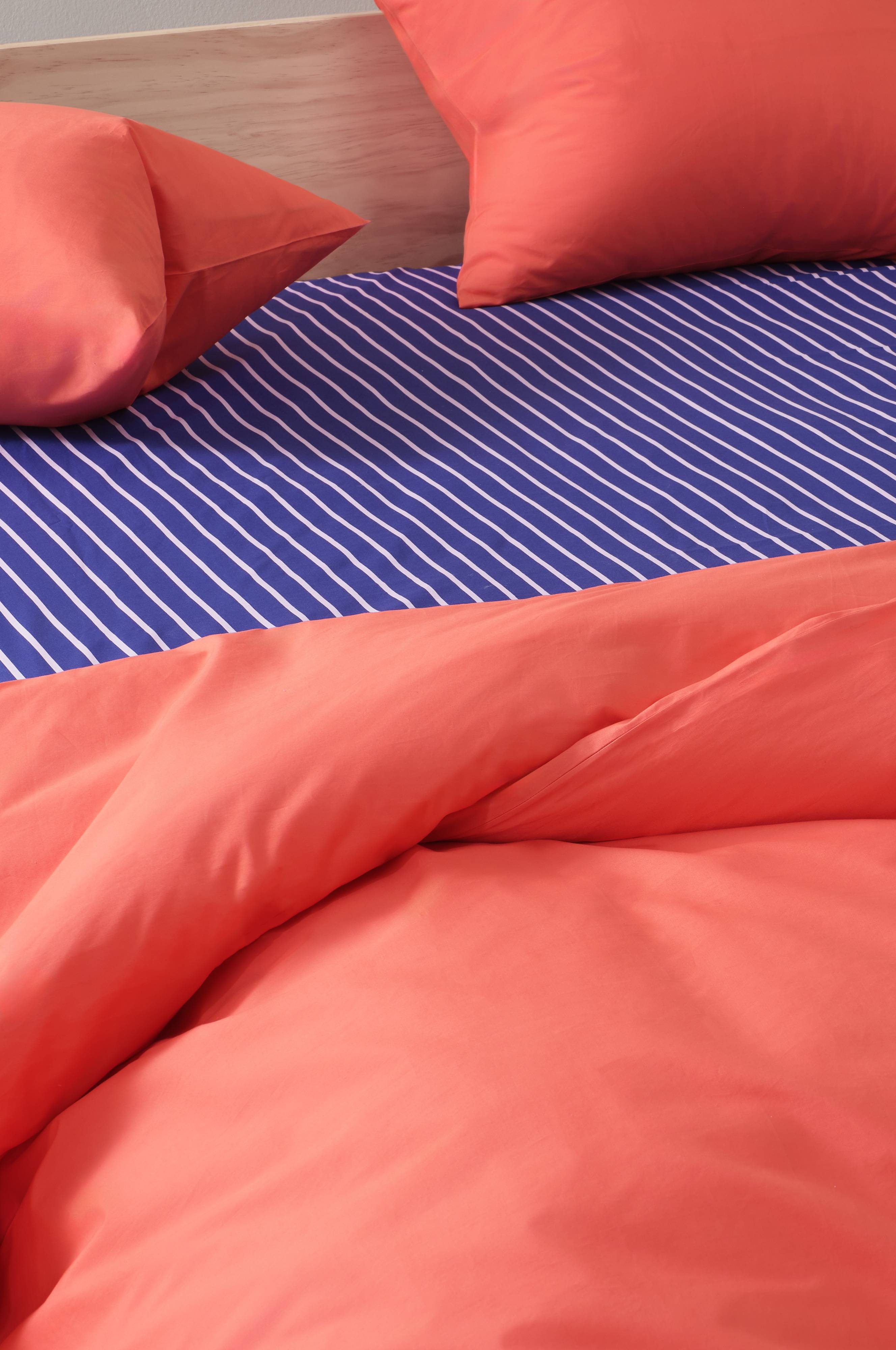Prześcieradło SIMA łączy wygodę i styl, wykonane z ekologicznej bawełny, tworząc spokojną atmosferę w sypialni. Wyraźne, kolorowe paski dodają żywego akcentu Twojemu kompletowi pościeli.