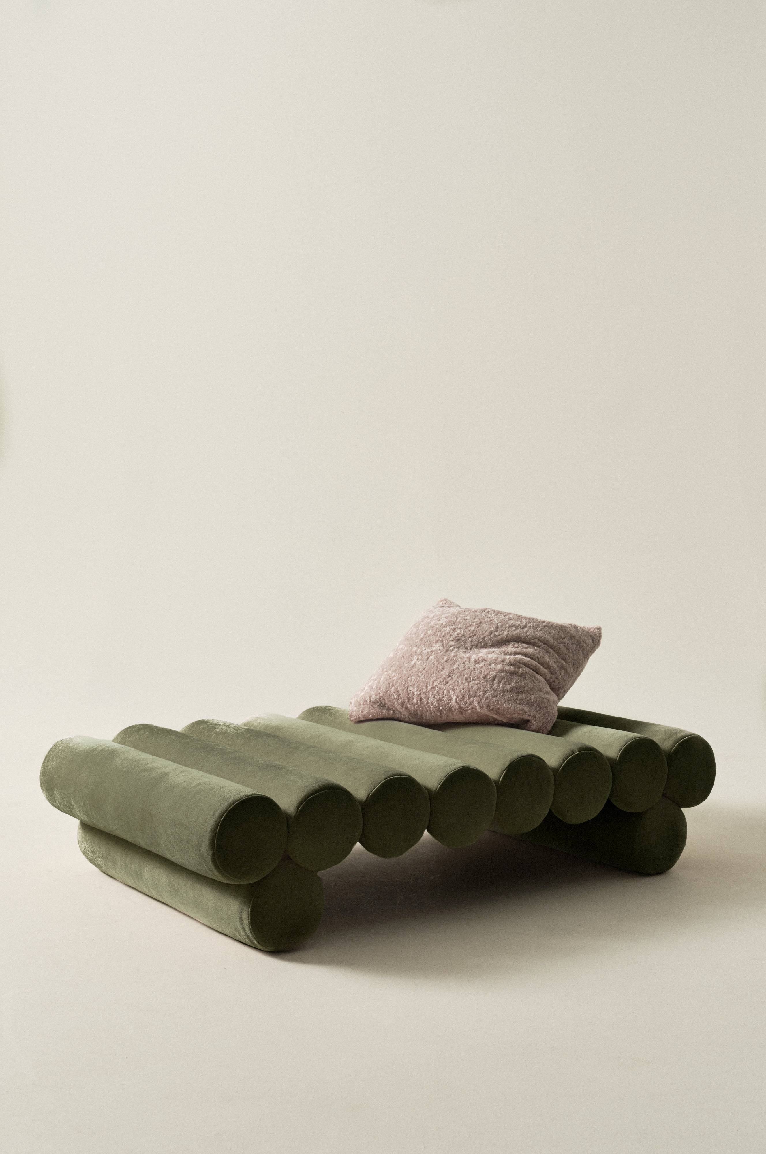 Puf SIMONETTA to mebel, który wyróżnia się dzięki swojemu pięknemu stylowi i charakterowi. Ramę wykonano z drewna sosnowego z certyfikatem FSC i sklejki. Pokrycie zostało wykonane z miękkiego aksamitu o wspaniałym połysku. Tkanina została wykonana w połowie z materiałów pochodzących z recyklingu. Pokrycie jest bardzo wytrzymałe, do 45000 cykli Martindale'a. Miękkie wypełnienie zostało wykonane z zimnej pianki i poliestru. Pokrycie nie jest zdejmowane.