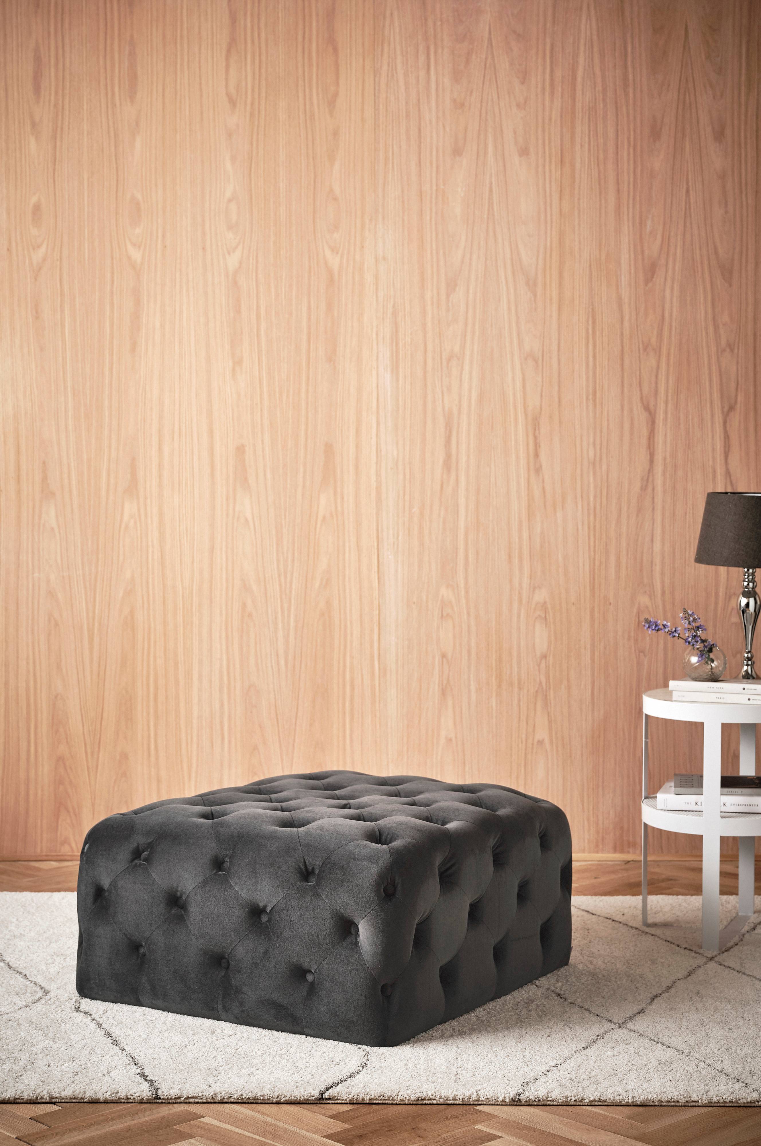 Kwadratowy puf do siedzenia z aksamitnym obiciem pikowanym powleczonym guzikami. Połączenie sprężyn falistych, zespołu sprężyn kieszonkowych i gumy piankowej zapewnia najwyższy komfort siedzenia. Puf przyda się doskonale, gdy pojawi się dużo gości. Obicie pufa zszyte jest z małych kawałków materiału, a dzięki temu, że aksamit to materiał z bardzo krótką okrywą włosową, w zależności od tego, jak pada światło, zszyte ze sobą kawałki zawsze będą się od siebie różnić. Nadaje to pufowi ożywiony wygląd. Materiał ma wytrzymałość 28 000 cykli Martindale'a.
