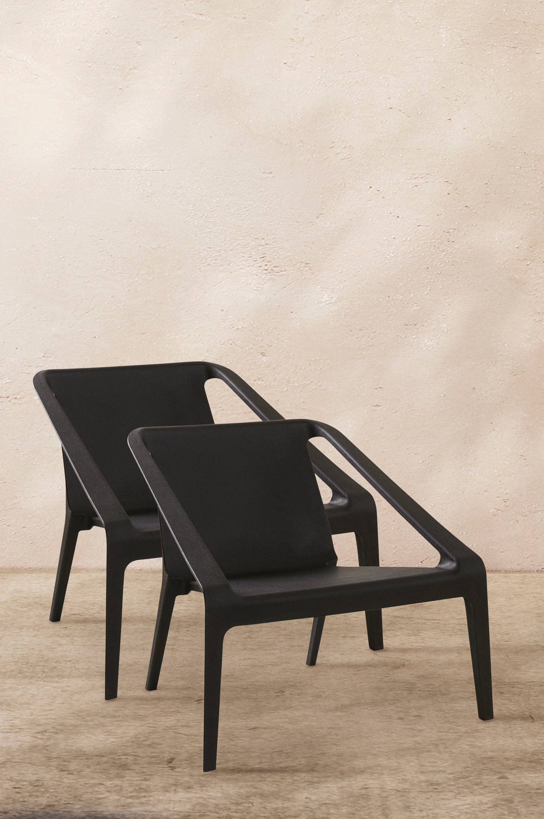 2 krzesła ogrodowe uformowane z tworzywa sztucznego. Wygodne krzesło ogrodowe z siedzeniem odlanym z polipropylenu. Krzesła można ustawić jedno na drugim, dzięki czemu odstawienie ich w inne miejsce nie stanowi problemu.
