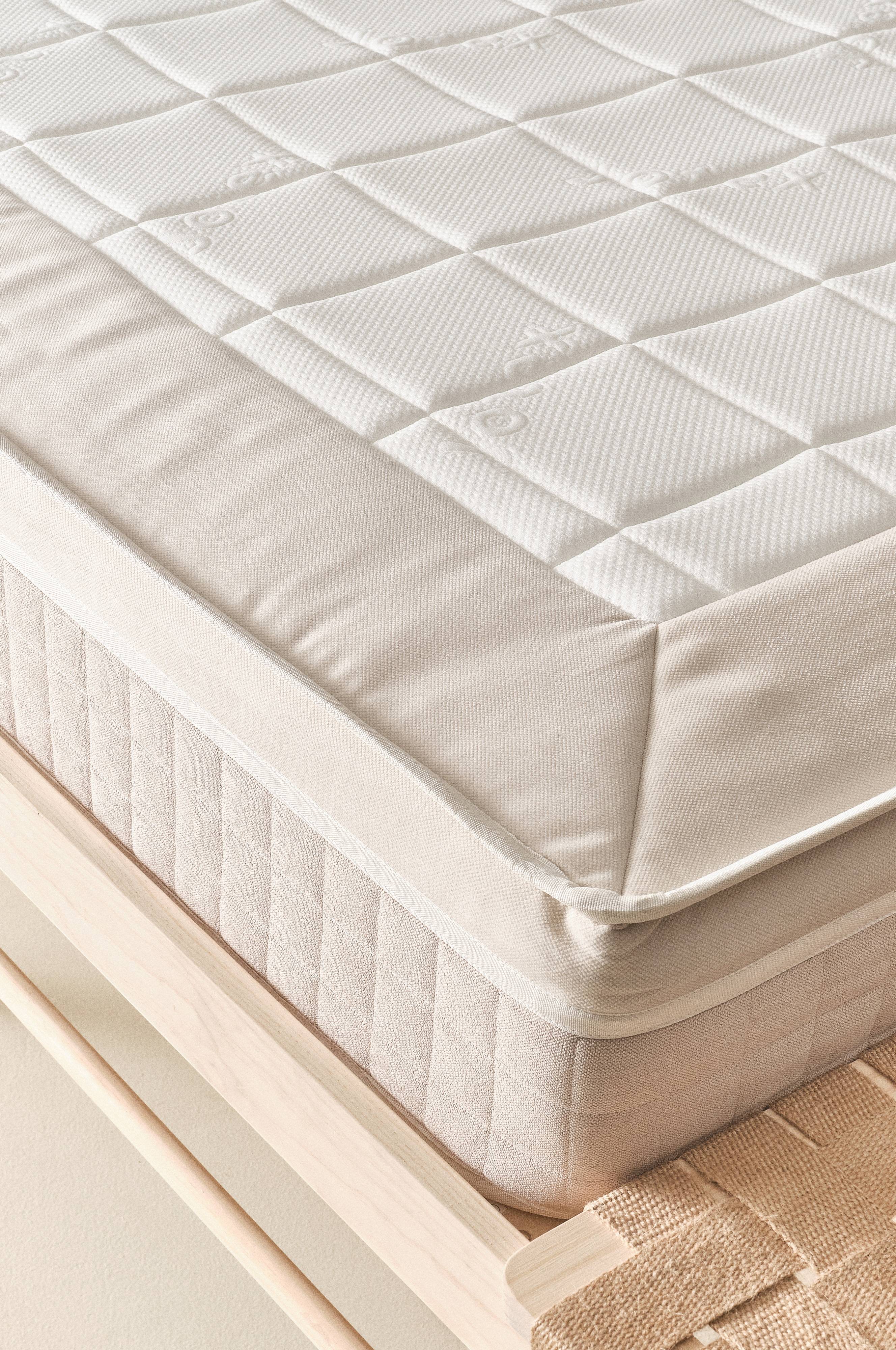 Zewnętrzna tkanina jest miękka i przytulna, a dzięki paskowi na górze staje się elastyczna, gdy poruszasz się podczas snu. Waga 320 g/m², 65000-70000 Martindale. Tkanina zewnętrzna nie jest zdejmowana.