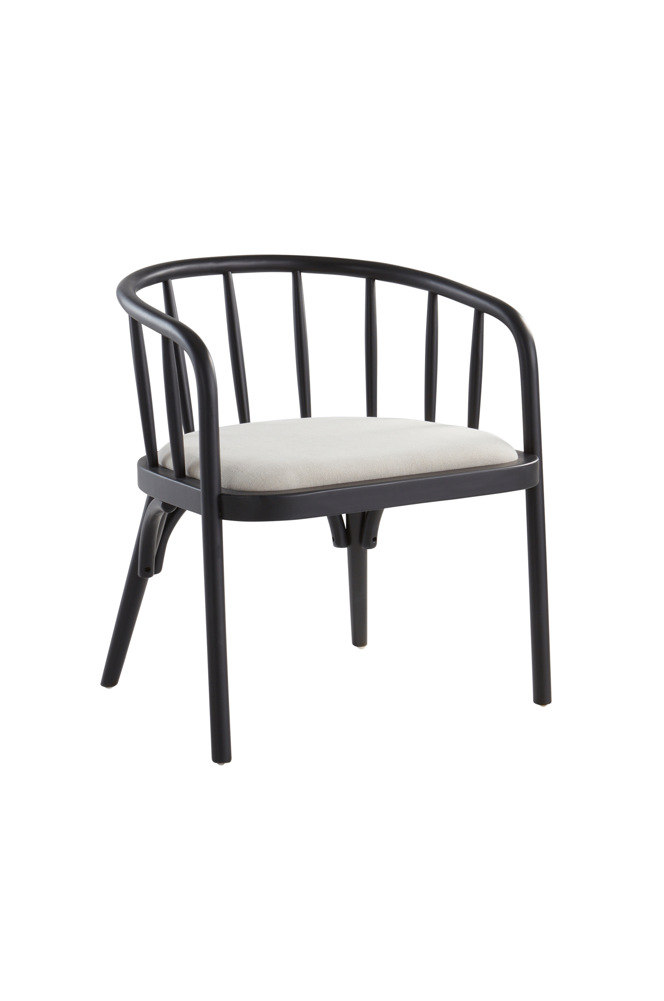 Krzesło wypoczynkowe z naturalnego dębu lub czarnej brzozy. STOCKSUND to wygodne krzesło o miękkich liniach, profilowanym oparciu i siedzisku pokrytym jasną, lnianą tkaniną.