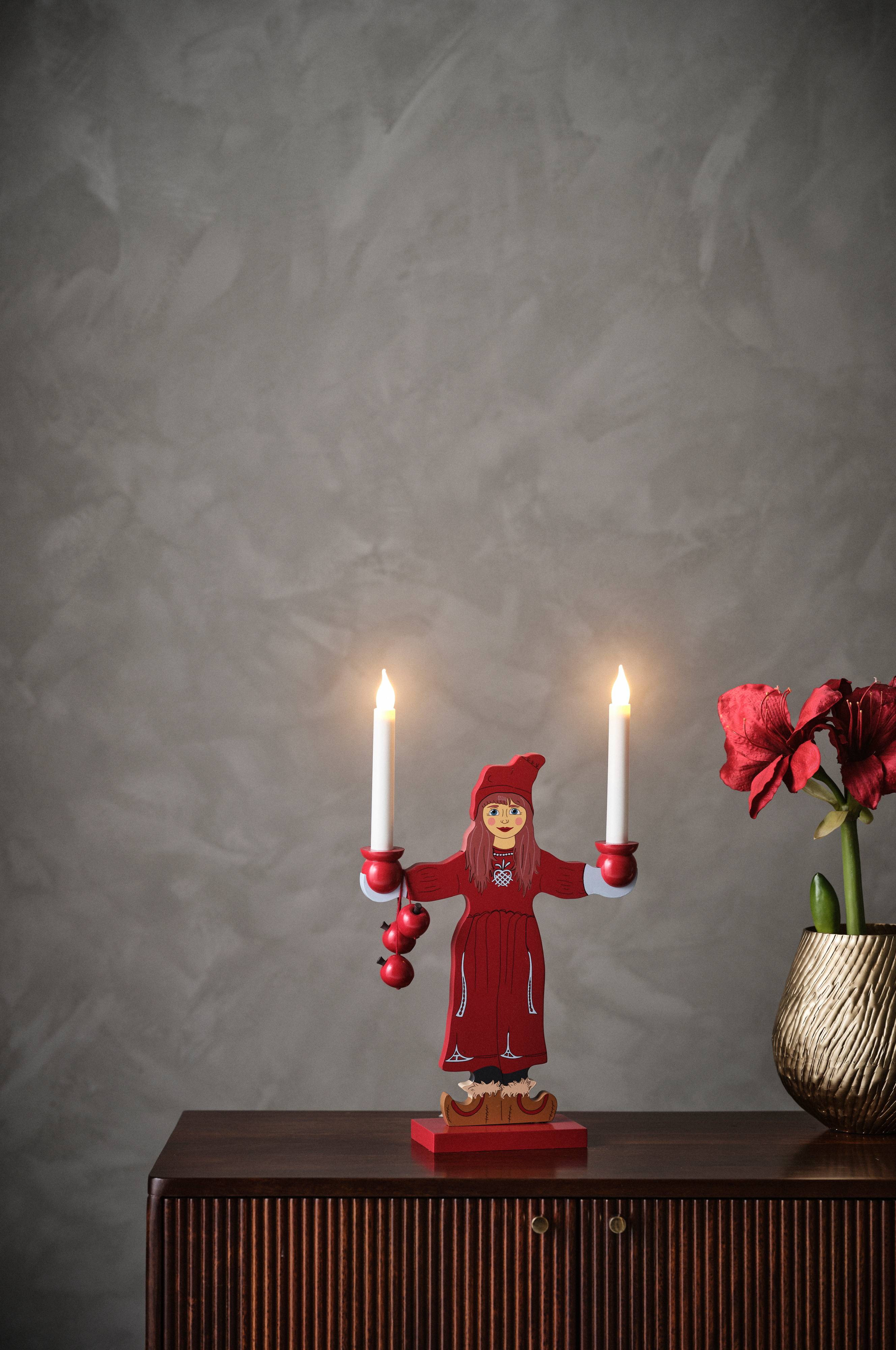 Drewniany świecznik elektryczny z dwoma żarówkami. Do użytku w pomieszczeniach. Długość przewodu 1,8 m. Żarówki w zestawie.