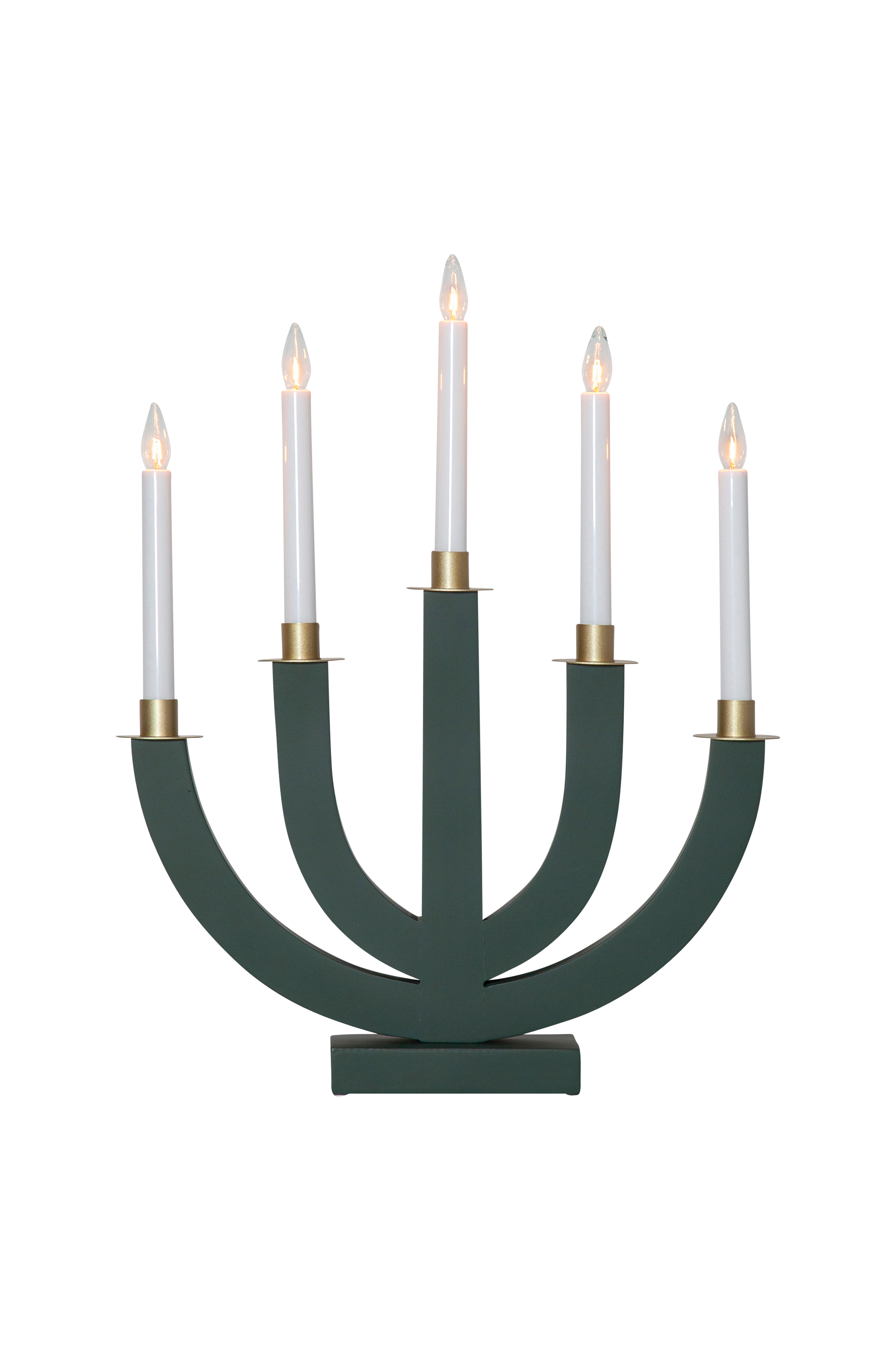 Drewniany świecznik z 5 lampkami oraz dekoracją w kontrastujących odcieniach, który będzie pasować do każdego pomieszczenia i stworzy cudowną świąteczną atmosferę zarówno na parapecie, jak i na półce lub kredensie. Przewód z przełącznikiem, długość 180 cm. Maksymalna moc 15W. Maksymalna moc lampki 3W.