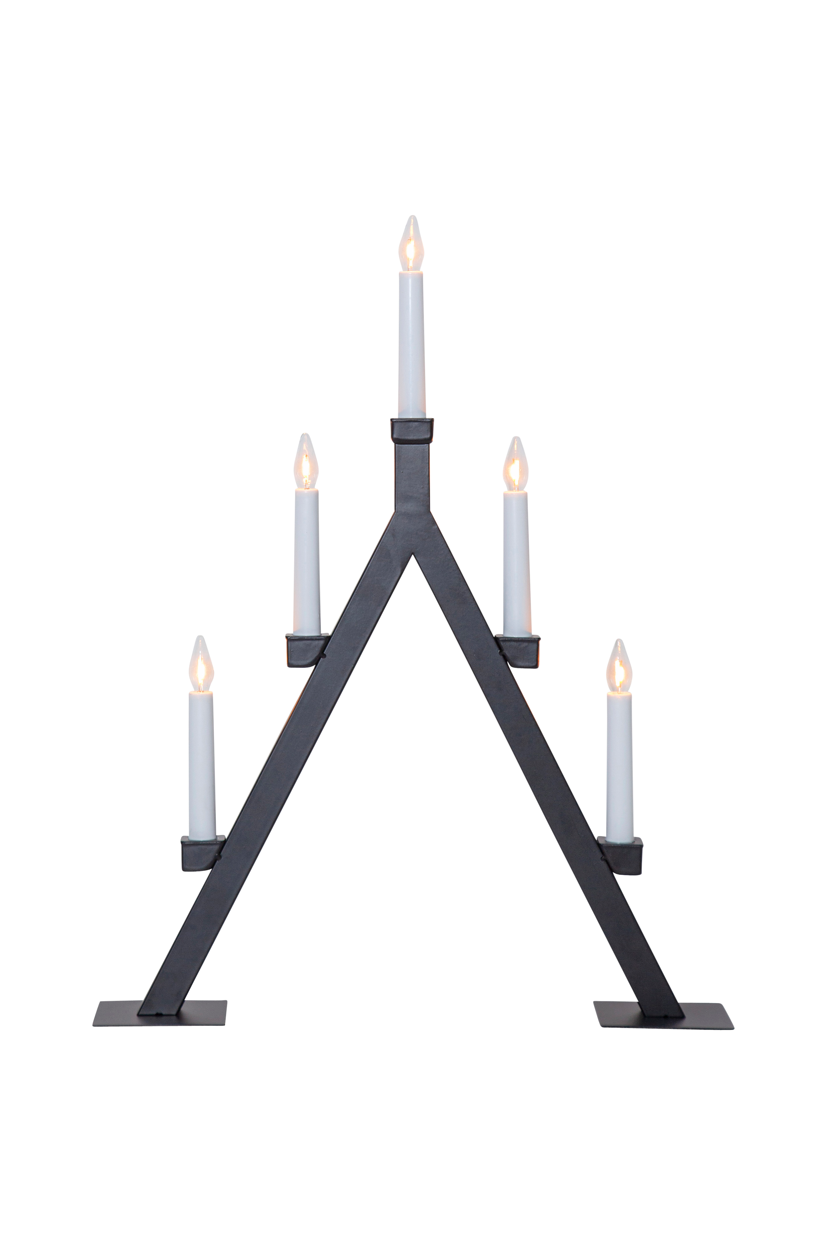 Oliver to adwentowy świecznik wykonany z metalu. 5 lampek roztacza nastrojowe światło tworząc śliczną świąteczną atmosferę w domu lub w biurze. W lampkach znajdują się żarówki led soft glow filament. Maksymalna moc żarówki 0,5W.