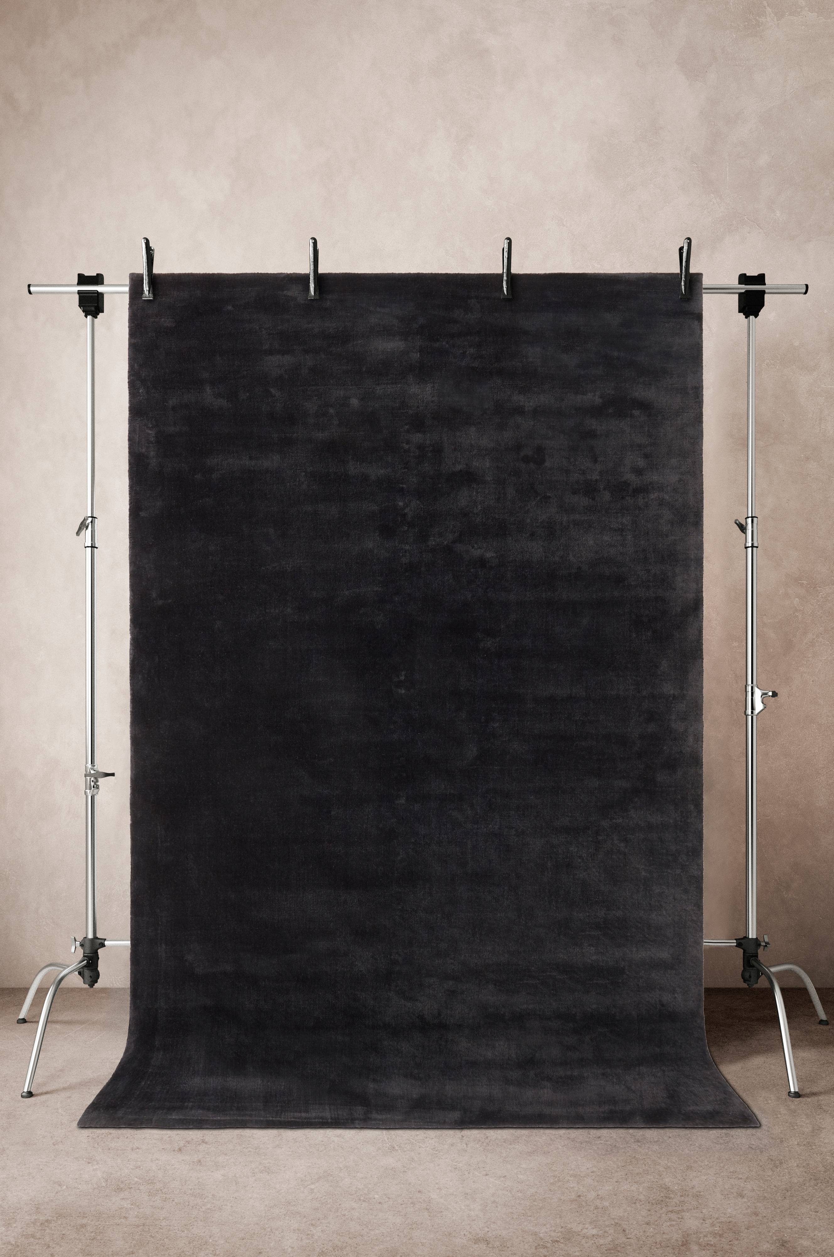 Ręcznie tkany dywan z lyocellu. Dywan odznacza się krótkim, gęstym włosiem o pięknym połysku mieniącym się w świetle różnymi odcieniami. Wyrazisty, choć ma przecież tylko jeden kolor. Długość włosia 1 cm. Grubość 1,5 cm. 2300 g/m².