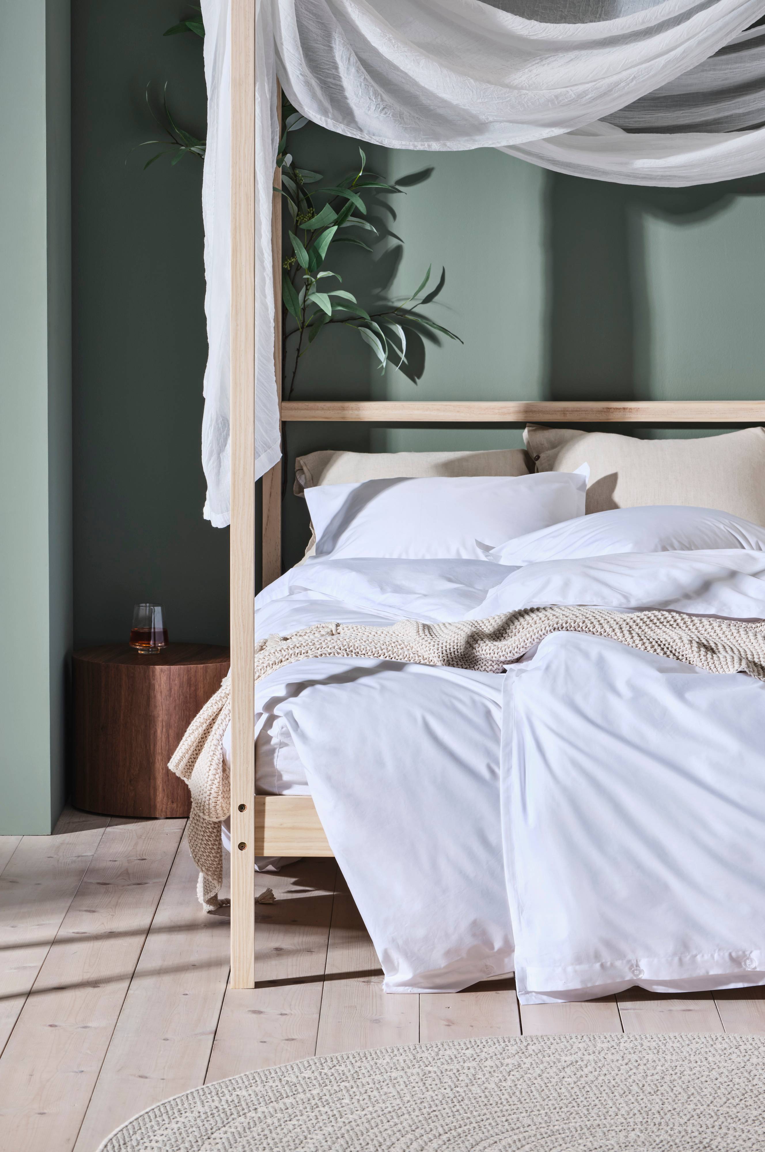 Poszwa z gładkiego bawełnianego perkalu utkanego z cienkich, delikatnych bawełnianych nici nadających materiałowi wyjątkową miękkość. Otwarcie w górnym rogu, dookoła poszwy obszycie o szerokości 2 cm, zapięcie na przezroczyste guziki. Gęstość splotu materiału wynosi 200 TC. (Gęstość splotu materiału oznacza ilość przeplecionych ze sobą nici, thread count, na cal kwadratowy materiału. Im wyższa gęstość tym lepsza jakość).