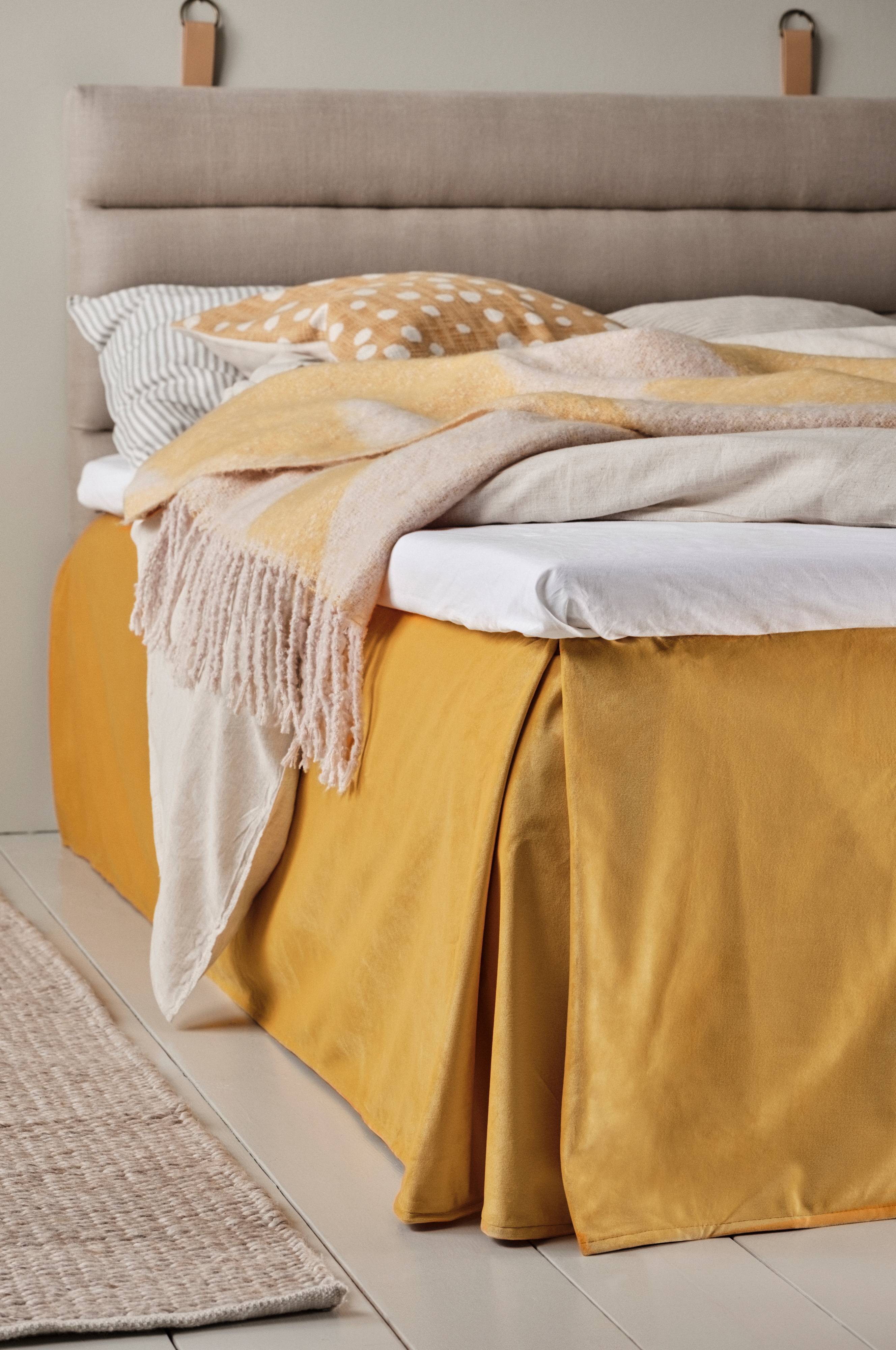 Jednokolorowy lambrekin z aksamitu z drugą (lewą) stroną z bawełny.
