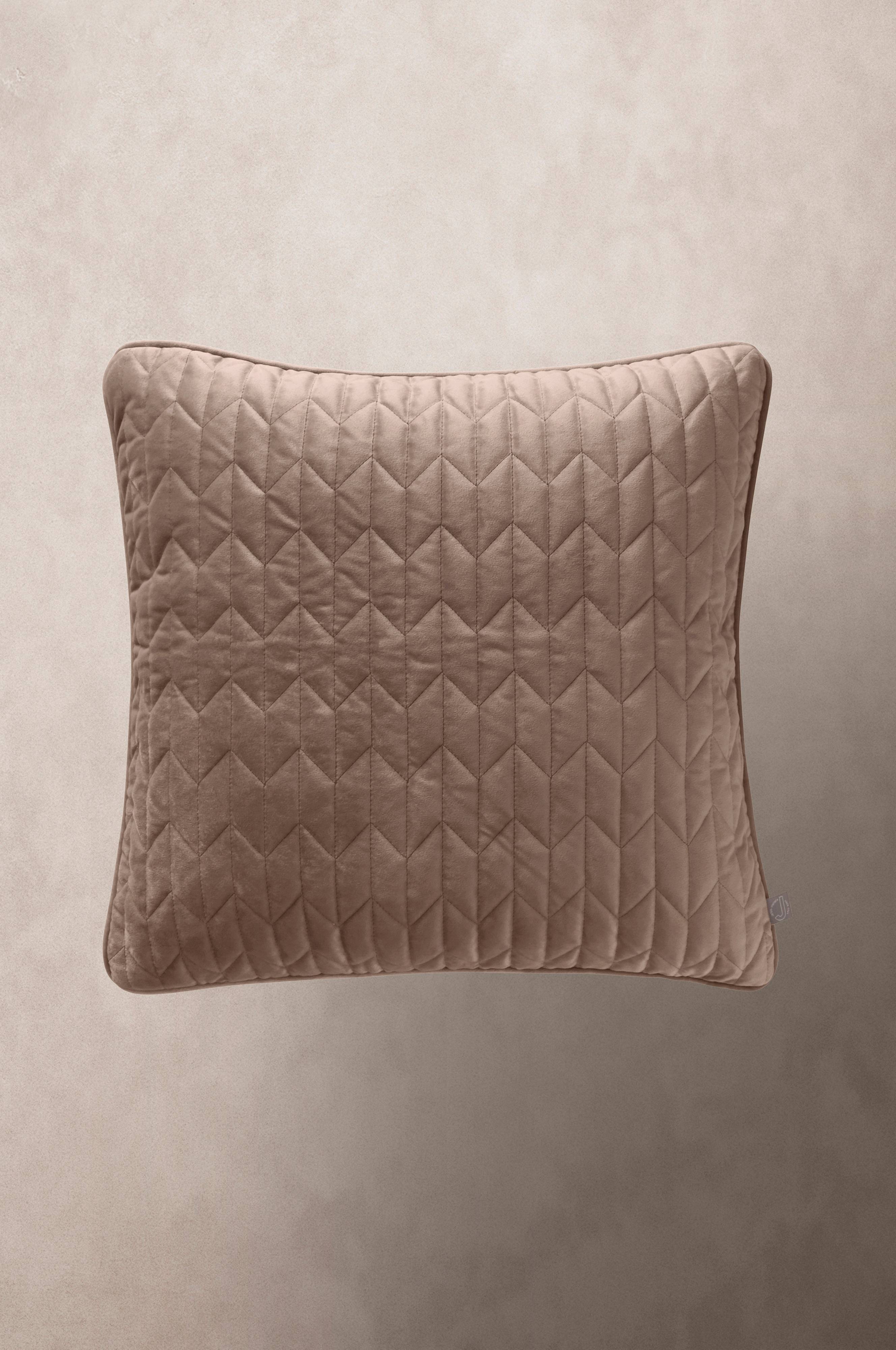 Dekoracyjna aksamitna poszewka z pikowanym frontem, lamówką wokół krawędzi i zamkiem błyskawicznym w dolnej krawędzi.