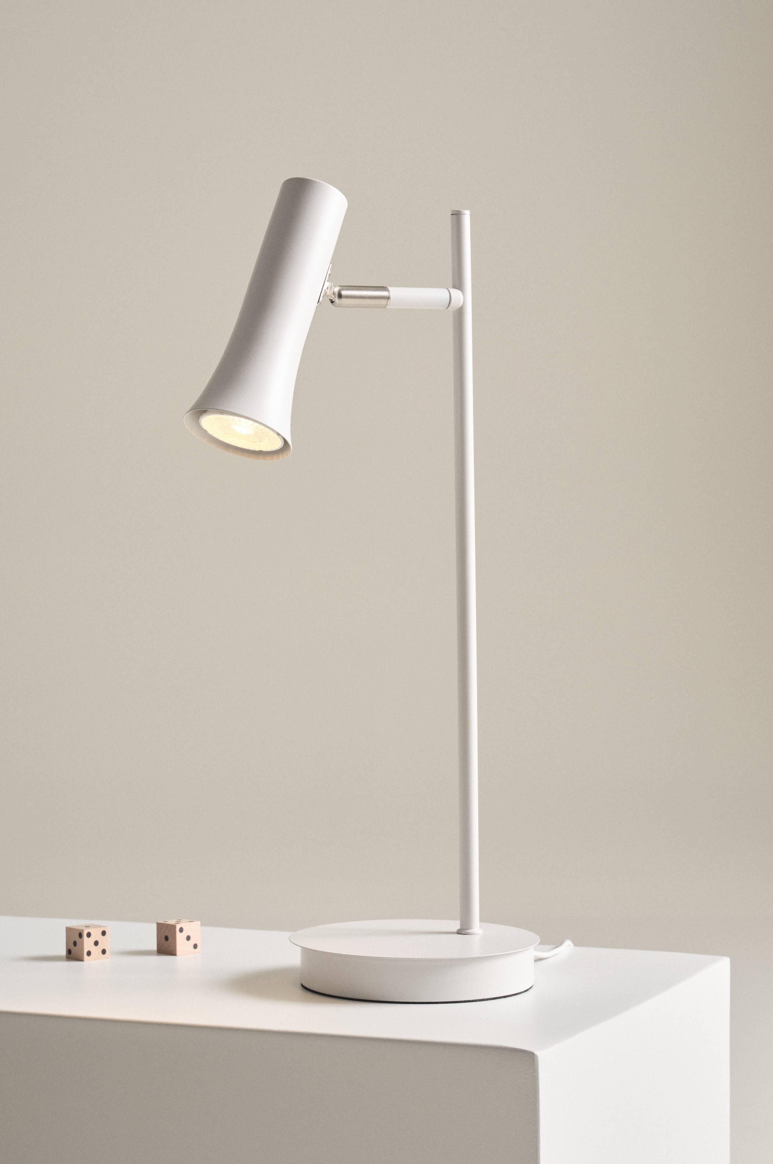 Metalowa lampa stołowa z kloszem o regulowanym ustawieniu, który zapewnia odpowiednie światło do czytania. Lampa jest stylowa i łatwa do ustawienia, więc świetnie sprawdzi się na biurku lub szafce nocnej. Przezroczysty przewód.