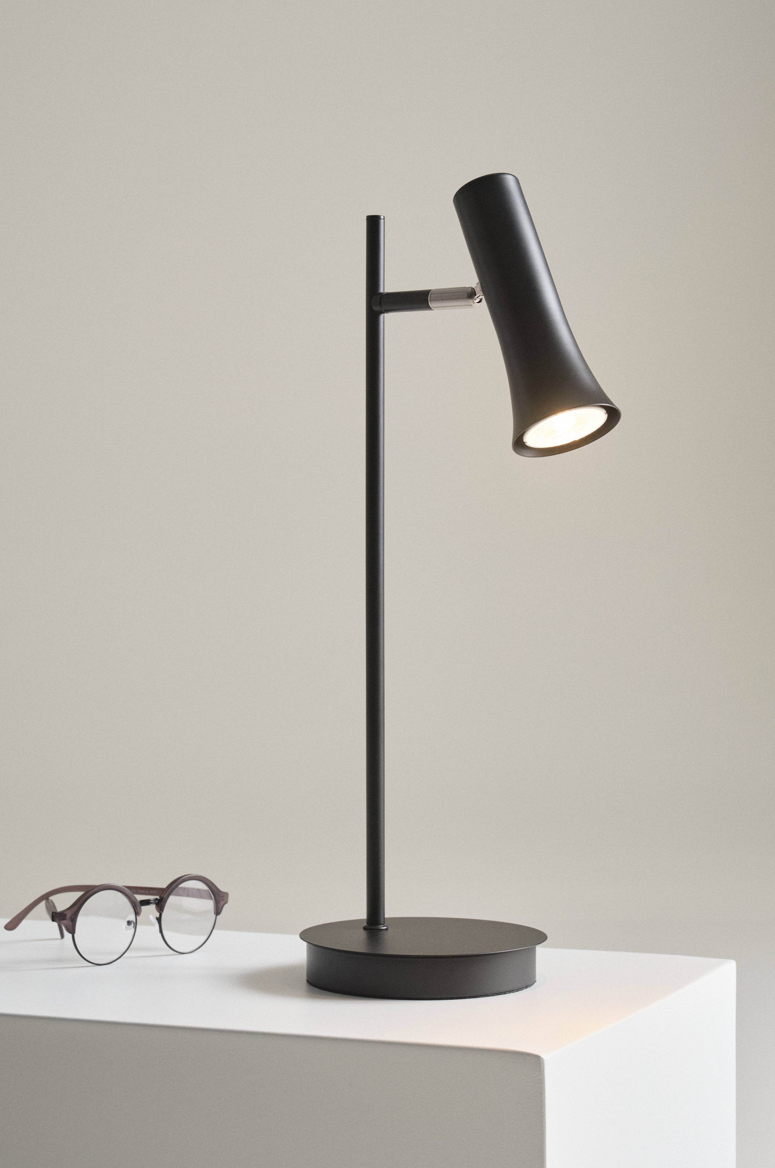 Metalowa lampa stołowa z kloszem o regulowanym ustawieniu, który zapewnia odpowiednie światło do czytania. Lampa jest stylowa i łatwa do ustawienia, więc świetnie sprawdzi się na biurku lub szafce nocnej. Przezroczysty przewód.
