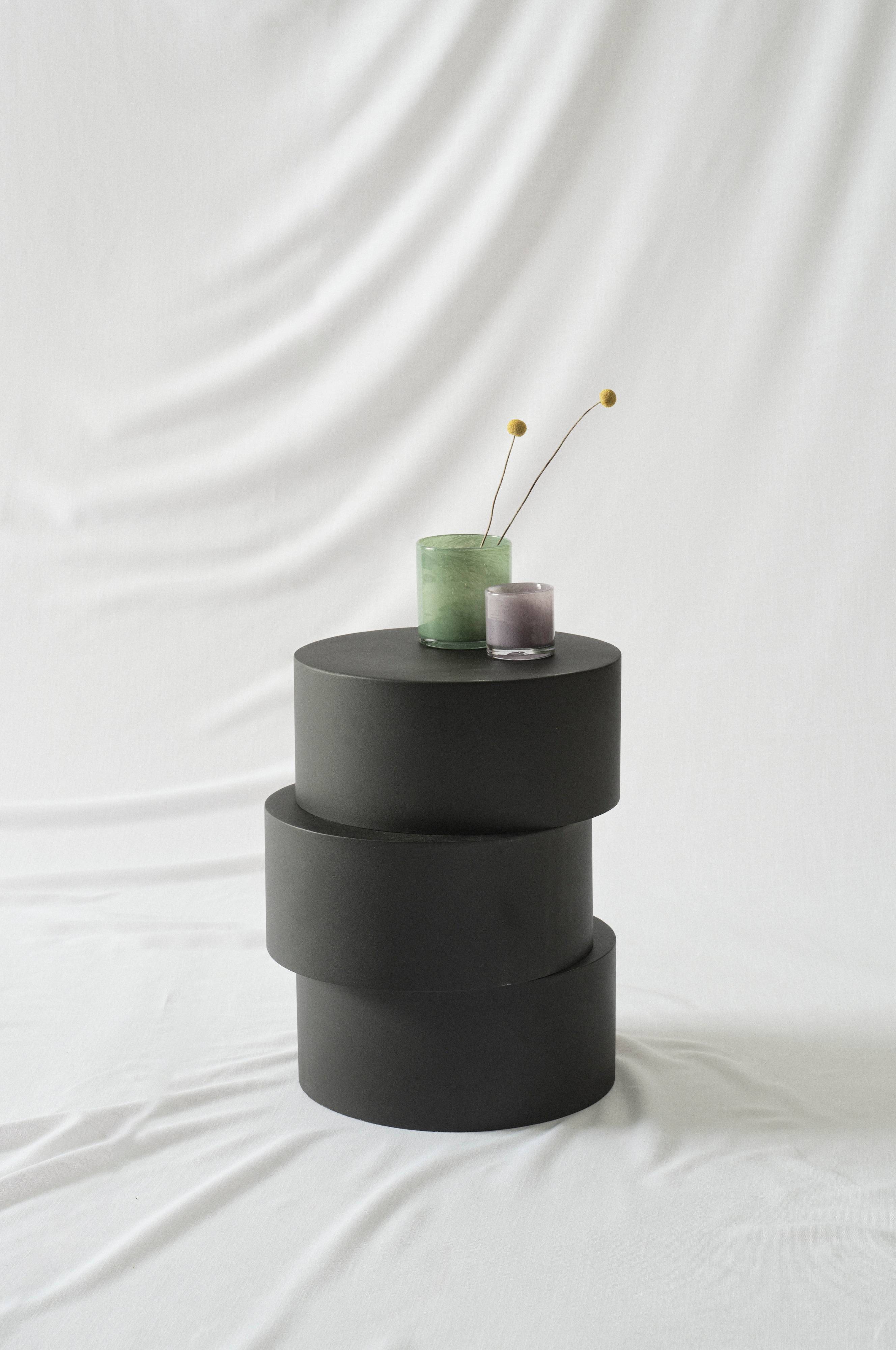 Okrągły stolik z żelaza, podzielony na trzy, asymetrycznie ułożone segmenty, nadające całości intrygującego kształtu. Stolik jest jednokolorowy, a lakierowanie metodą proszkową zapewniło jego powierzchni matowe wykończenie. Ten wyjątkowy stolik sprawi, że przyjaciele z wrażenia uniosą brwi.