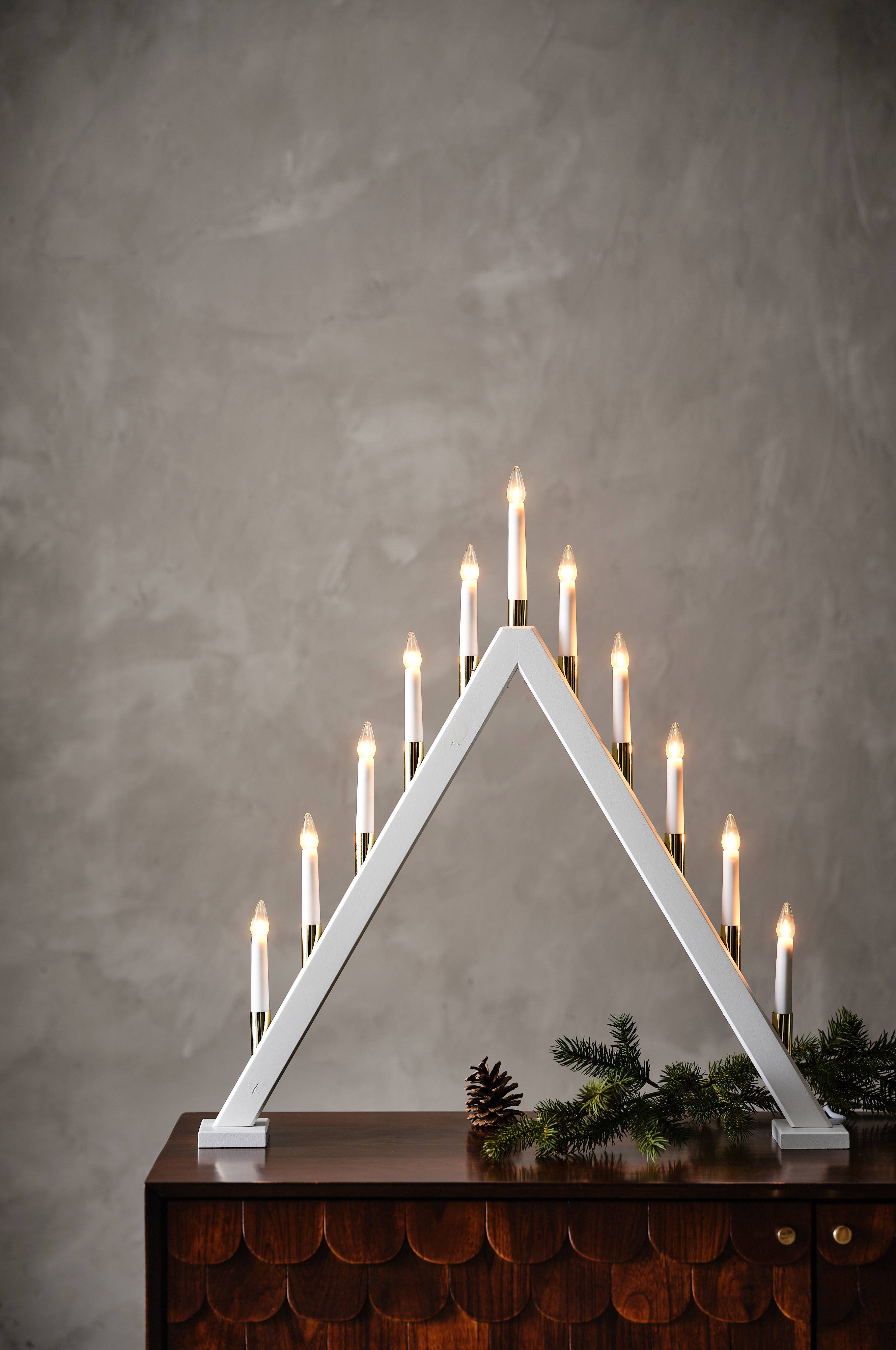 Jedenastoramienny świecznik elektryczny z drewna z metalowymi oprawkami. Do użytku w pomieszczeniach. Długość przewodu 2 m. Żarówki w zestawie.