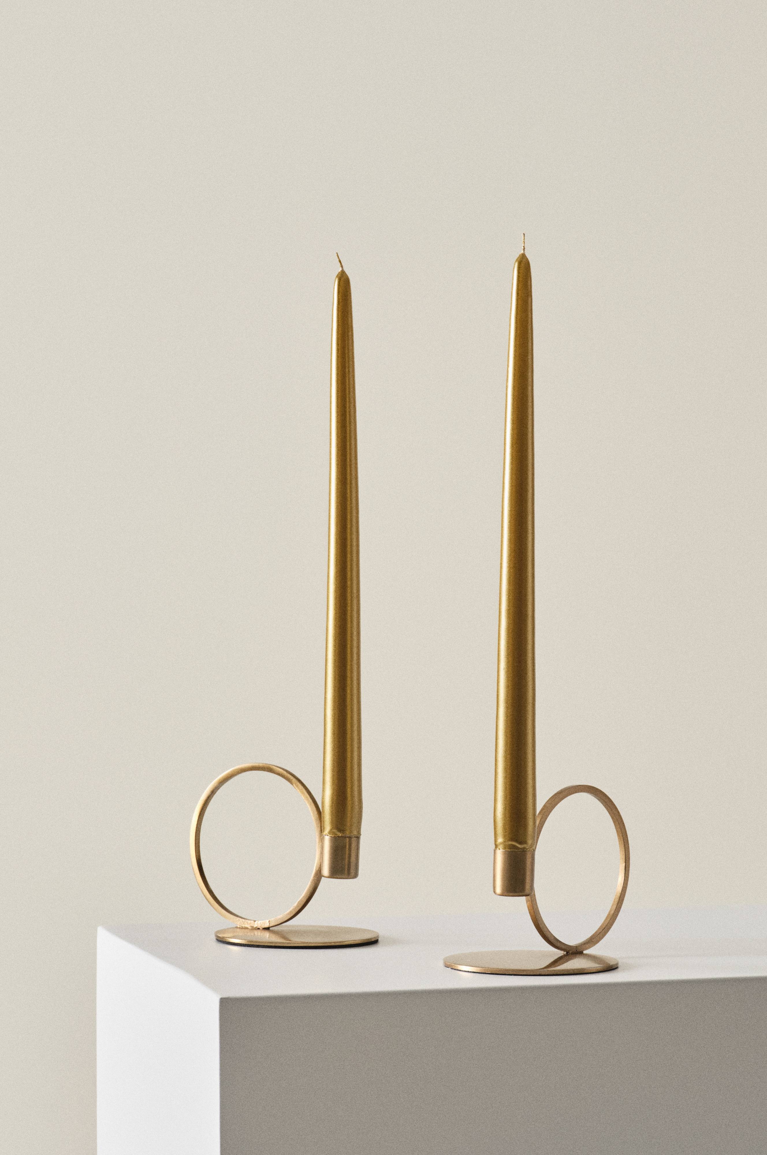 2 świece stożkowe ze stearyny i parafiny maczane w barwniku o metalicznym połysku. Świece są ręcznie odlewane w Szwecji. Odlewanie świec to piękna i wielowiekowa szwedzka tradycja, a przytulną atmosferę roztoczy blask płonącej świecy. Stearyna nie zawiera oleju palmowego. Parafina odznacza się dobrą palnością i posiada znak jakości RAL, który gwarantuje, że paląc się nie dymi i pozostawia niewiele sadzy.