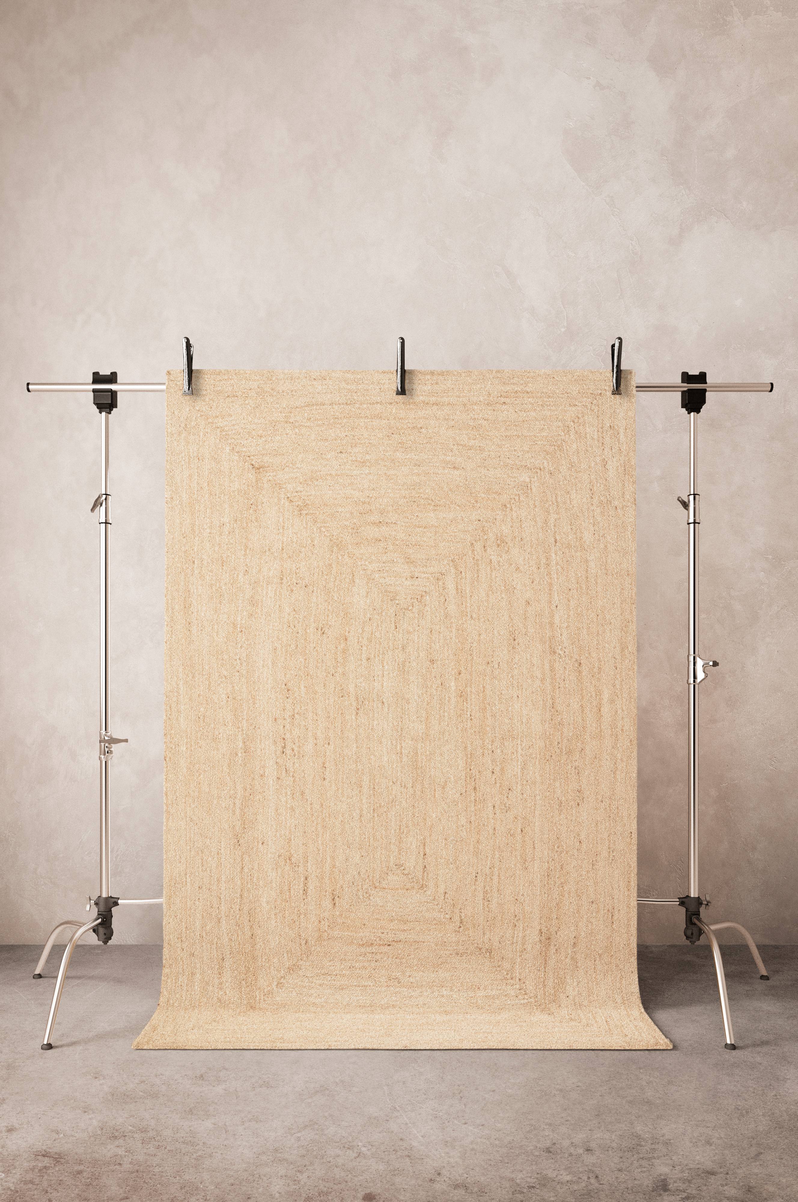 Ręcznie tkany dywan z juty w kolorze ziemi ozdobiony wzorem w kształcie prostokątów. Z dywanem VIGAN Twój pokój zyska ciepły i przytulny charakter. Grubość 0,4-0,5 cm. 2000 g/m².