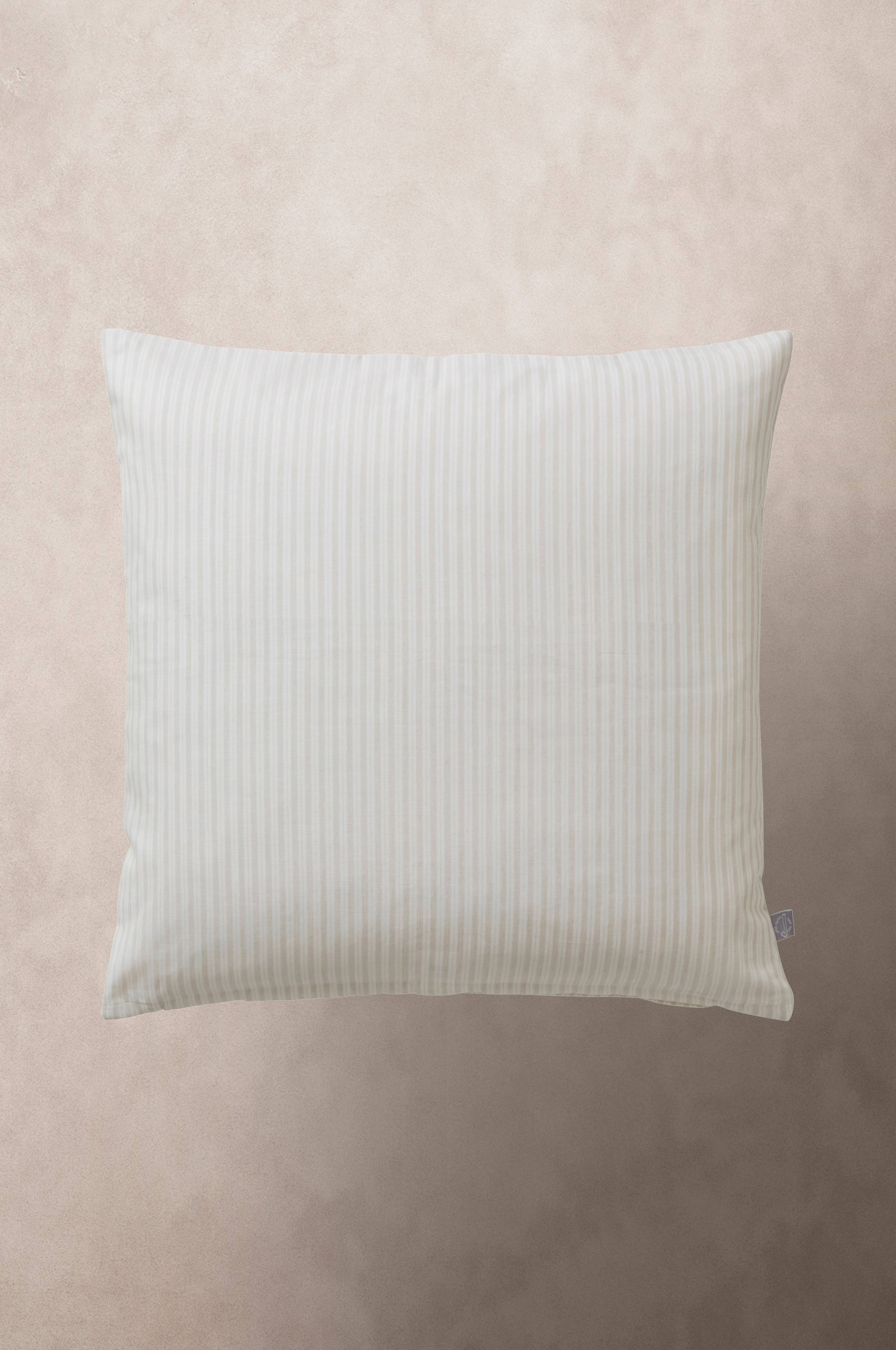 Dekoracyjna poszewka z eterycznego i szelestliwego tiulu, z jednokolorową, jasną podszewką. Wzór uroczych, wąskich pasków nadrukowanych na podszewce poszewki sprawia, że pomimo przejrzystości tiulu, nie musisz zastanawiać się jaką poduszkę wewnętrzną powinieneś wybrać. Zamek błyskawiczny w spodniej krawędzi.