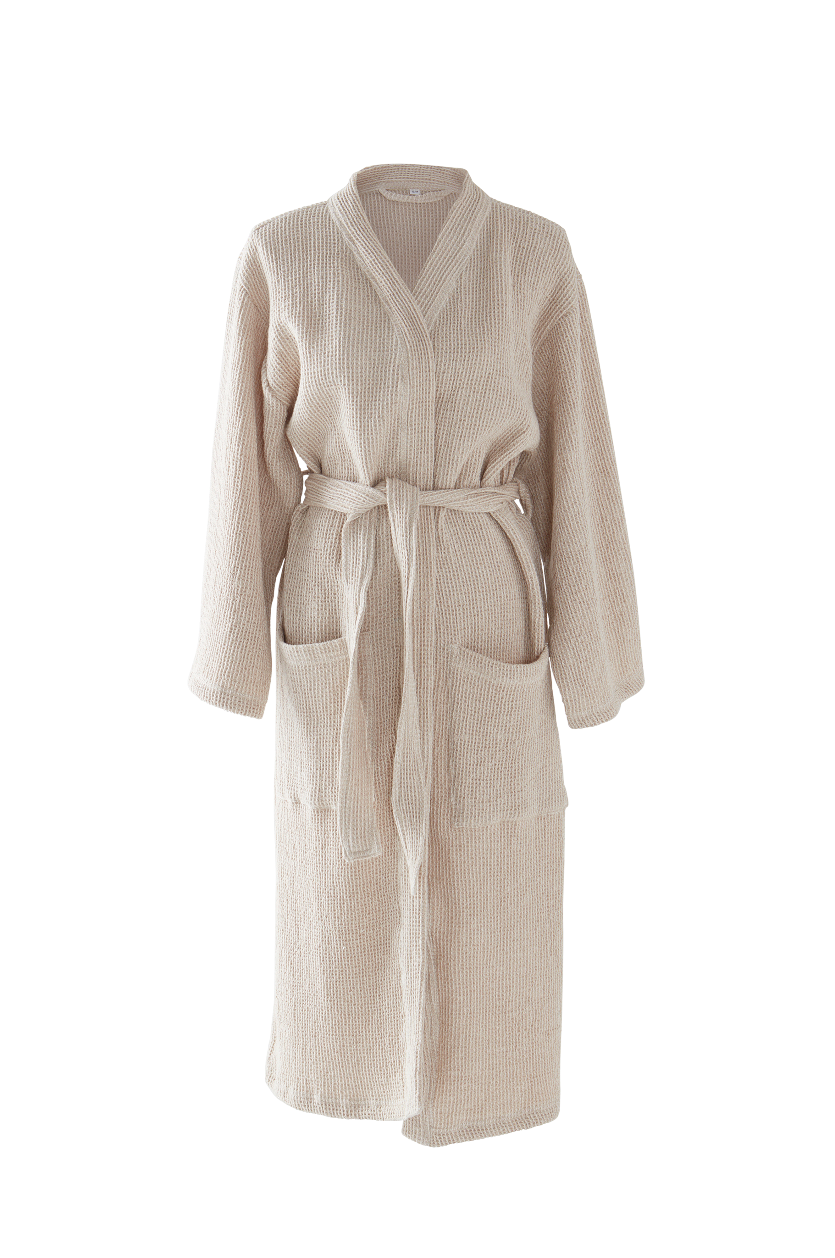 Miękkie i śliczne kimono z ekologicznej rozciągliwej bawełny w piękny waflowy splot. Waflowy splot nadaje całości uroczej asymetrii. Krótki model z kapturem od wenątrz obszytym dzianiną, dwiema przednimi kieszeniami i paskiem na wysokości talii. Gramatura wynosi 250 g/m².