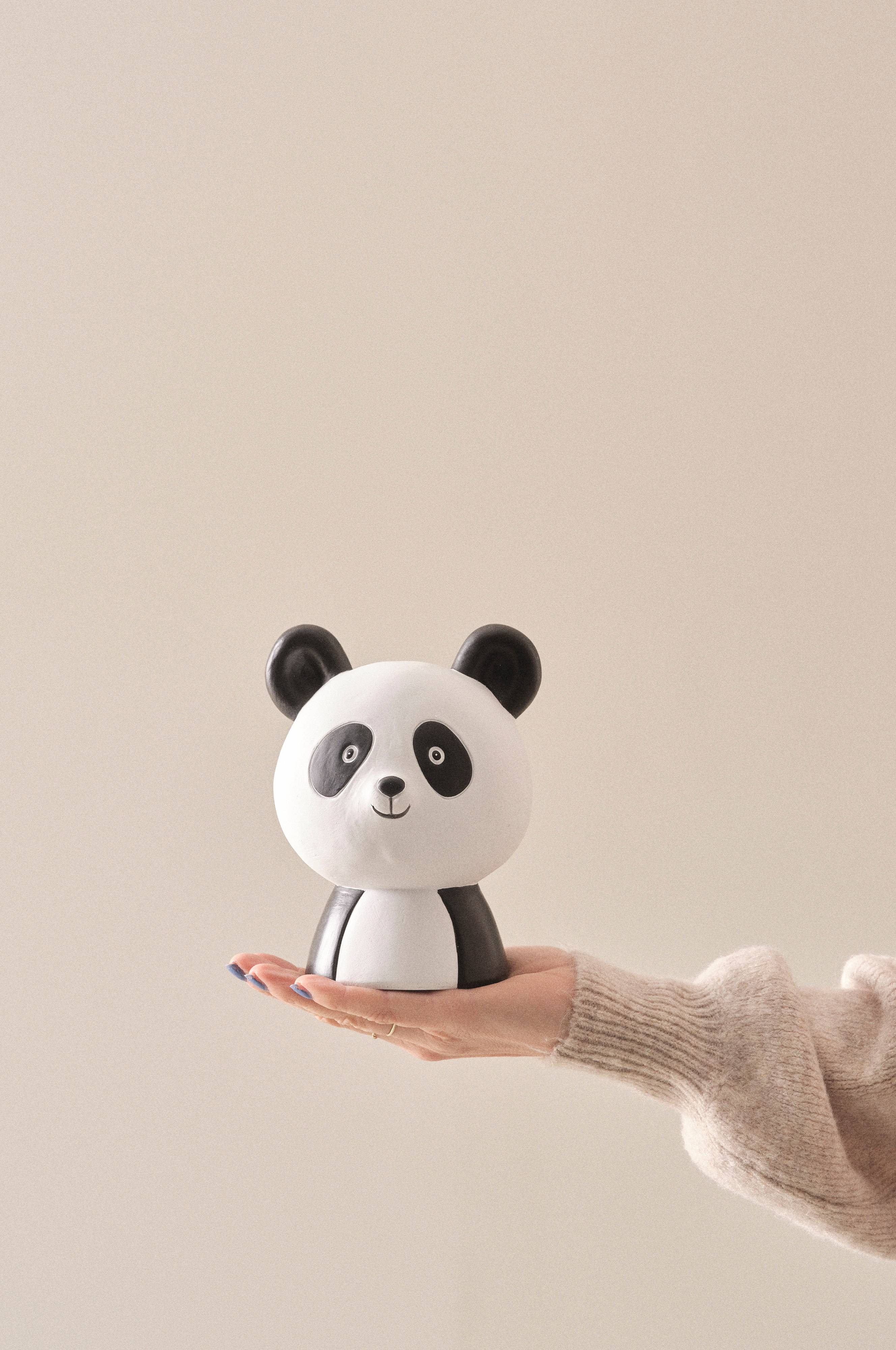 WESS to słodka panda wykonana ręcznie z porcelany dolomitowej i wapienia. Panda jest pomalowana na czarny i biały kolor.