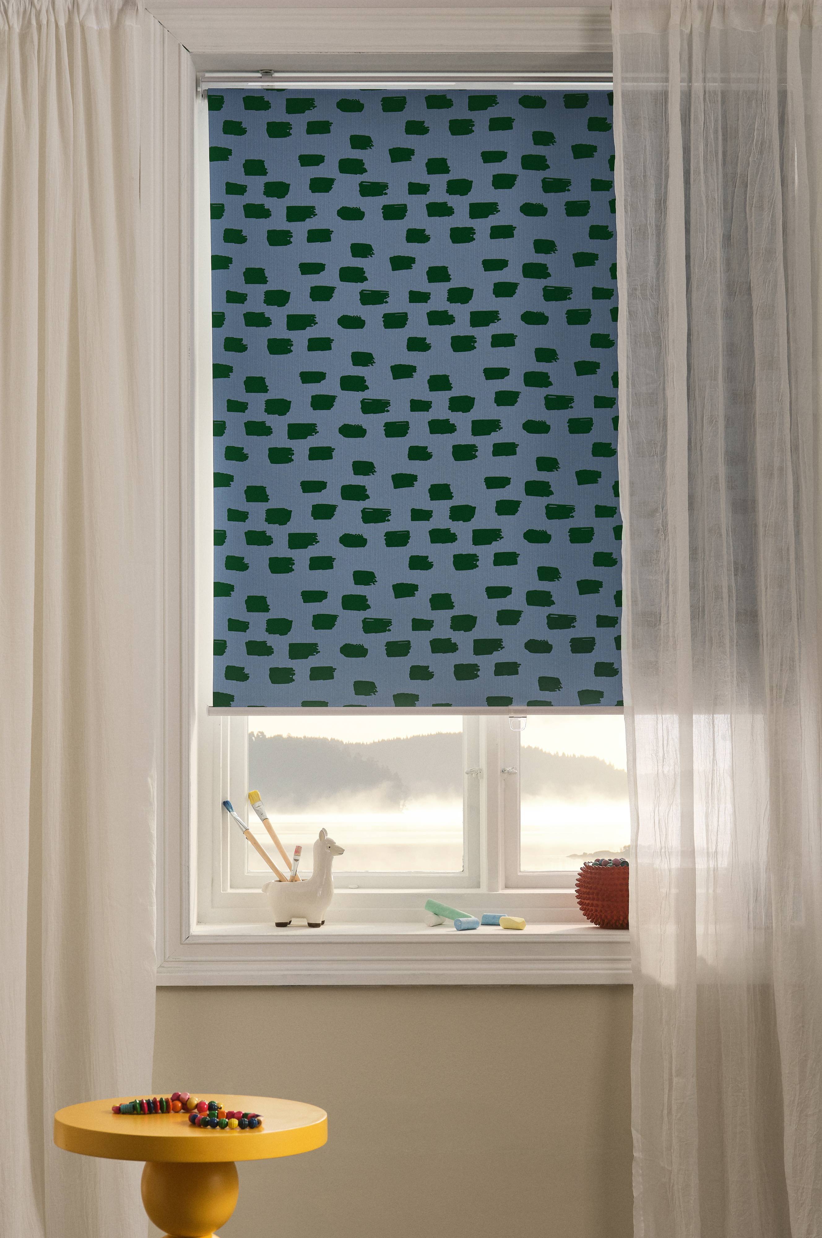 WYANDRA to zaciemniająca roleta wykonana z poliestru. Mocna tkanina blokuje światło słoneczne, dlatego świetnie zaciemni pokój dziecięcy, sypialnię lub pokój, w którym oglądasz telewizję. Roleta ma u góry metalowe zaczepy, dzięki którym przymocujesz ją do ściany. W dolnej krawędzi umieszczony został okrągły, metalowy pręt. Wykonany z przezroczystego plastiku uchwyt na dolnej krawędzi umożliwia łatwe rozwijanie i zwijanie rolety. Od strony zwróconej do pomieszczenia, roletę zdobi wzór pociągnięć pędzla, a po stronie zwróconej do okna znajduje się warstwa blokująca światło. Mocowanie do ściany w zestawie. Łatwa w montażu. Do produktu dołączona jest instrukcja montażu.