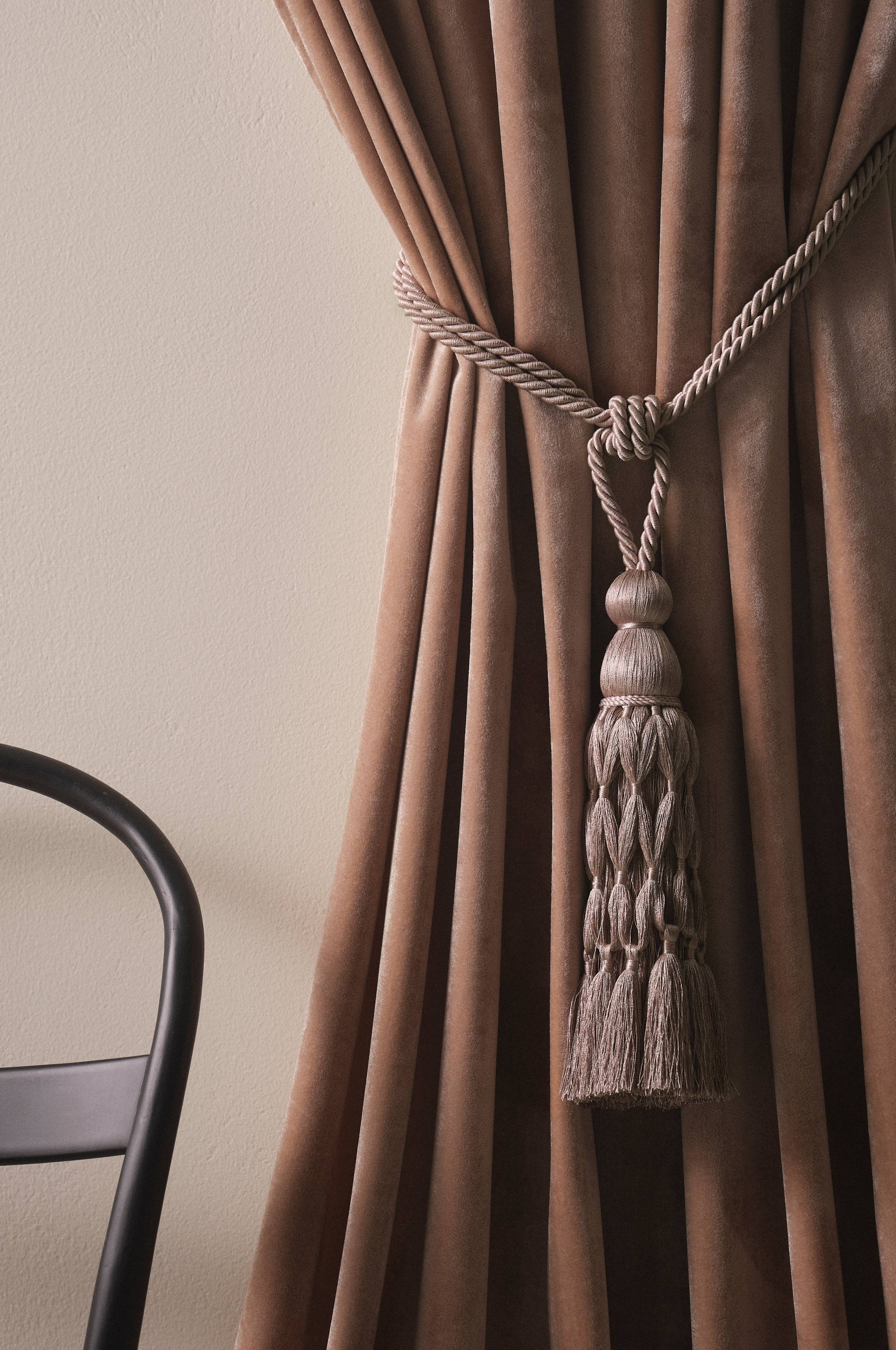 2 opaski do zasłon z poliestru. YUNA to eleganckie i odważne opaski z chwostem, które pięknie dopełnią Twoje zasłony.