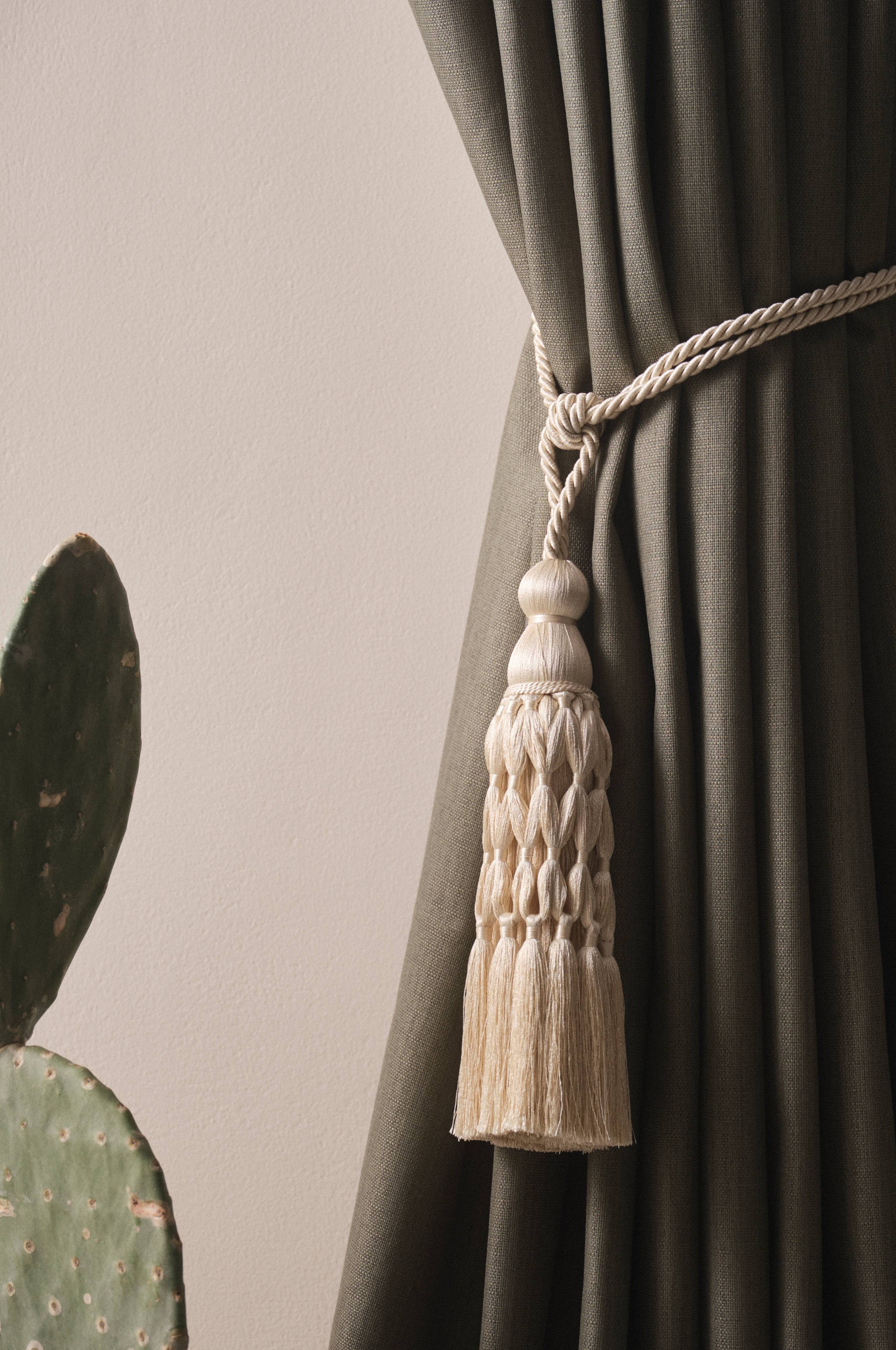 2 opaski do zasłon z poliestru. YUNA to eleganckie i odważne opaski z chwostem, które pięknie dopełnią Twoje zasłony.