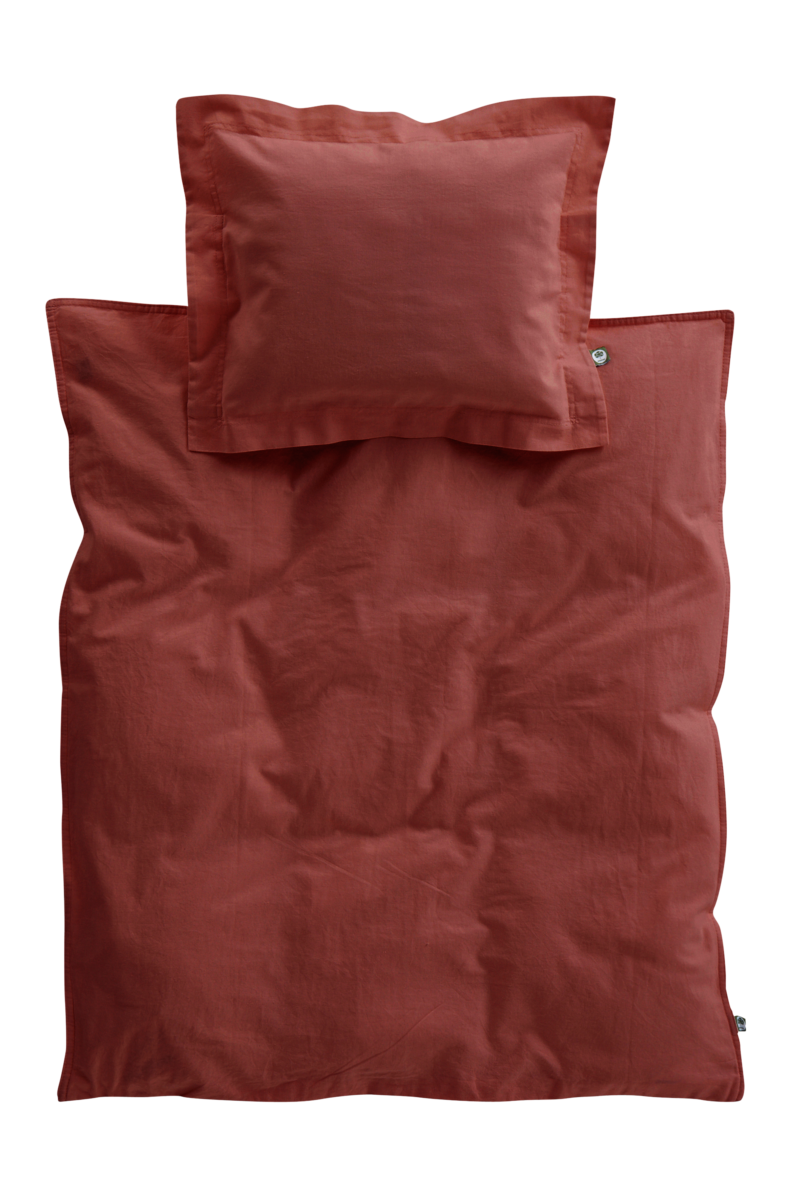 Dwuczęściowy komplet pościeli z gładkiej ekologicznej bawełny. Komplet nadaje się do wózków i kołysek. Komplet poddany został praniu przemysłowemu, co oznacza, że po uszyciu pościel była wyprana, dzięki czemu zyskała na miękkości i wyglądzie. Podwójne szwy. Poszewkę na poduszkę okala lamówka o szerokości 3 cm. Komplet zapakowany jest w elegancką torbę z materiału ze ściąganym zamykaniem. Gęstość splotu materiału wynosi 120 TC. (Gęstość splotu materiału oznacza ilość przeplecionych ze sobą nici, thread count, na cal kwadratowy materiału. Im wyższa gęstość tym lepsza jakość).