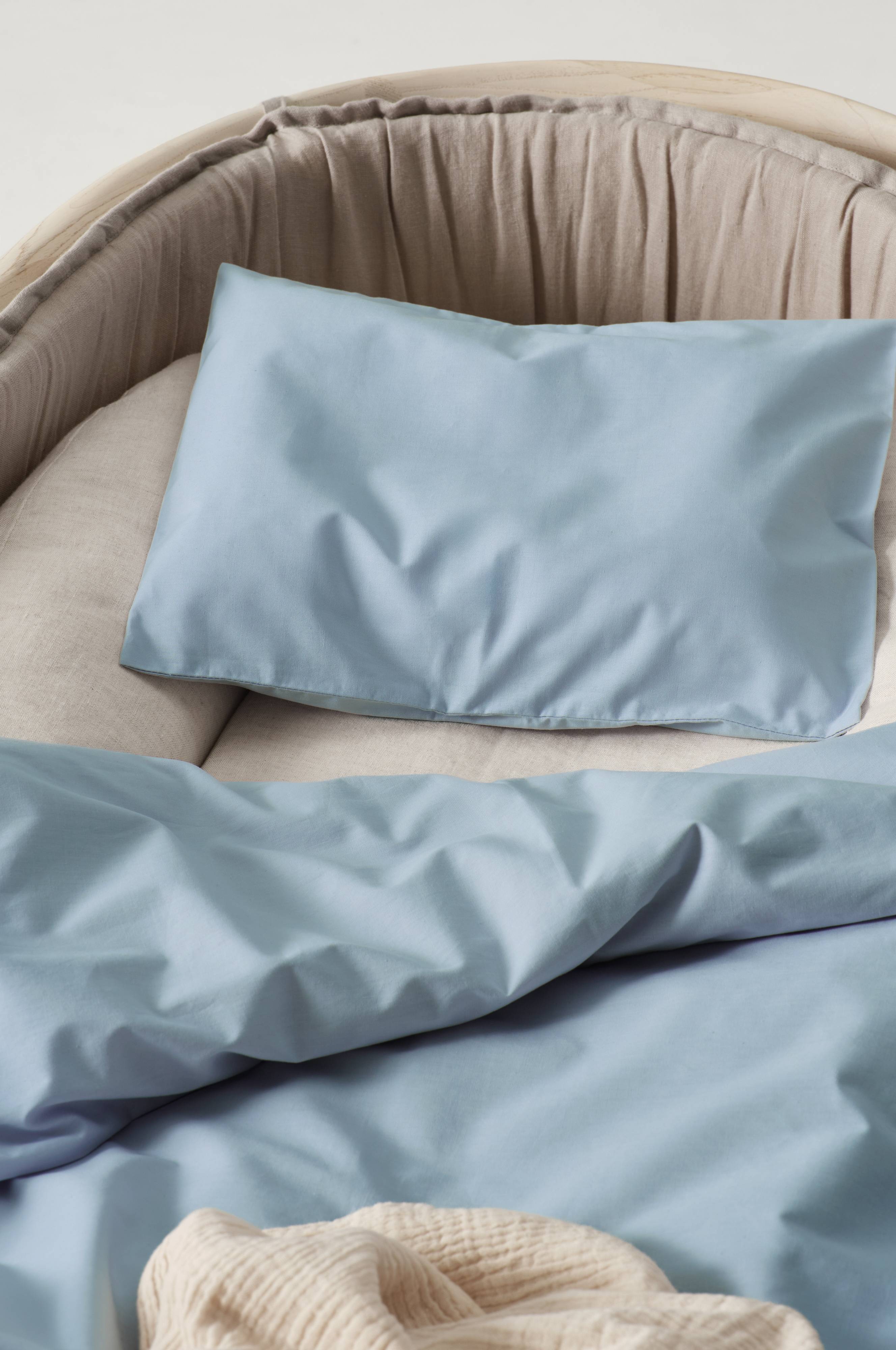 Dwuczęściowy komplet pościeli składający się z poszwy i poszewki uszytych z cudownego gładkiego perkalu utkanego z ekologicznej bawełny. Komplet nadaje się do kołysek i wózków. Perkal to wyjątkowo miękka i przyjemna tkanina tkana z cienkich, delikatnych nici bawełnianych. Gęstość splotu materiału wynosi 200 TC. (Gęstość splotu materiału oznacza ilość przeplecionych ze sobą nici, thread count, na cal kwadratowy materiału. Im wyższa gęstość tym lepsza jakość.)