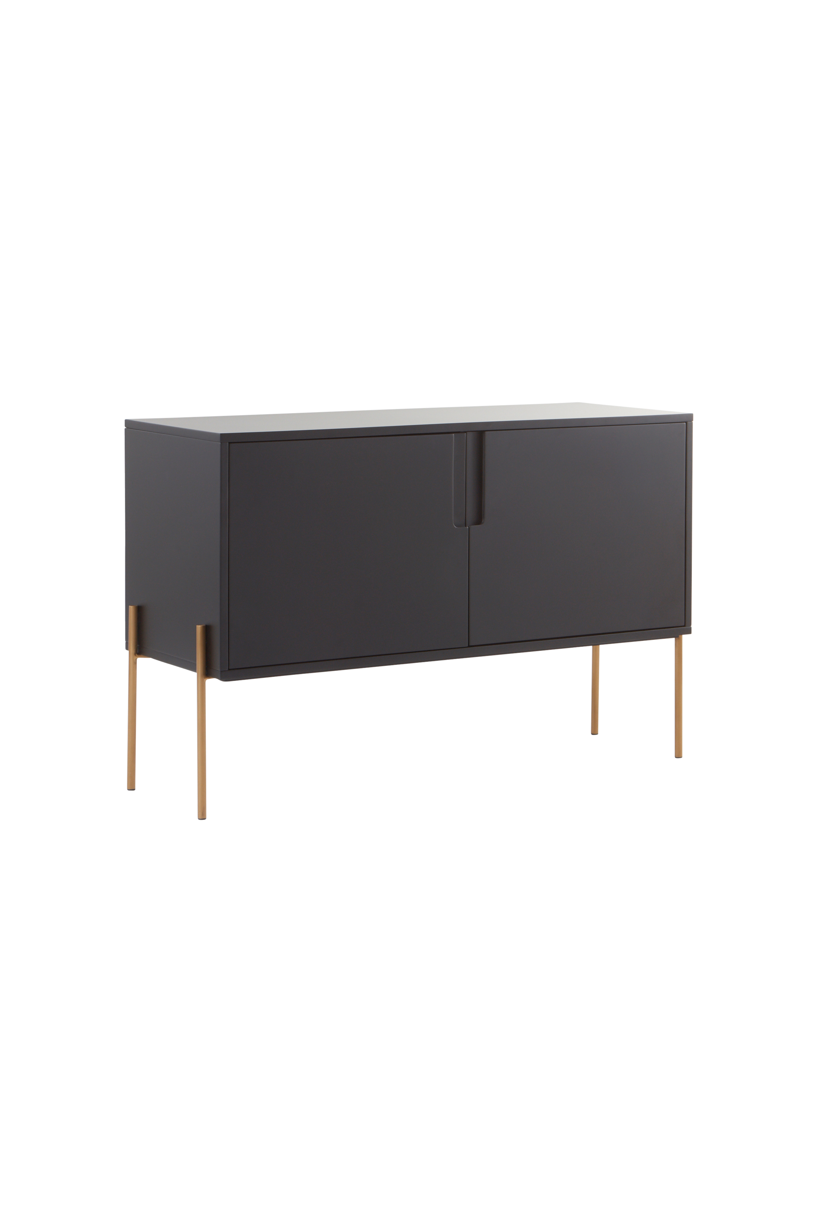 Szafka wykonana z płyty MDF pokrytej warstwą matowego lakieru na nóżkach ze stali nierdzewnej w kolorze mosiądzu. Szafkę zdobią śliczne detale, np. wyfrezowany uchwyt pośrodku przedniej części mebla. ZOLLIKON w swoim klasycznym designie jest ponadczasowa. Wewnątrz szafka podzielona jest na dwa segmenty, w każdym znajduje się nieregulowana półka. Przechowywanie ukryte za eleganckimi drzwiczkami to praktyczne rozwiązanie. Śruby w zestawie. Wymaga częściowego montażu.